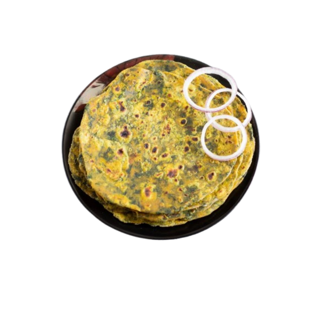 Made with fresh fenugreek leaves blended into the dough, this paratha offers a mildly bitter and herby taste packed with nutrition.