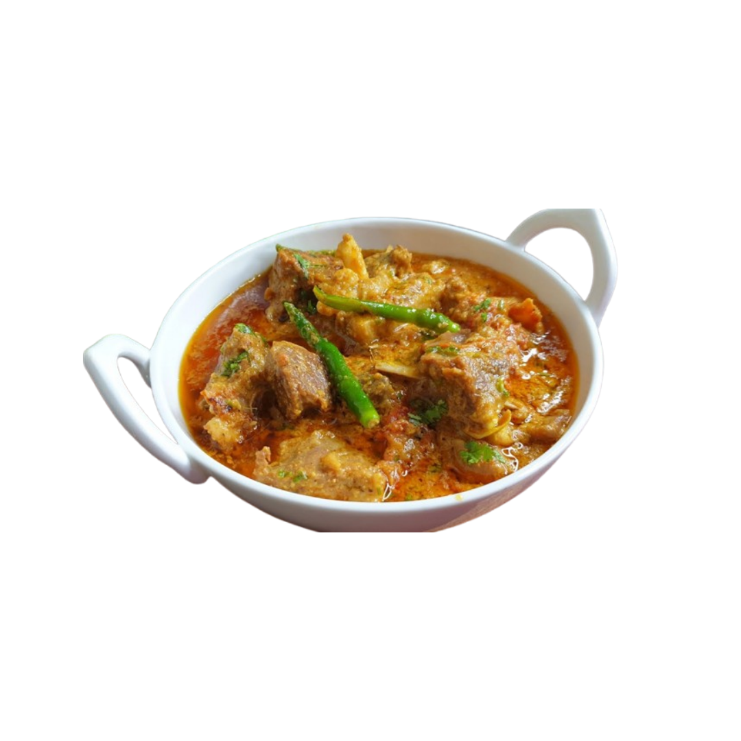 Rich and regal, this Mughlai-style dish is prepared with mutton, cream, and cashew paste — offering a delicate balance of sweetness and spice.